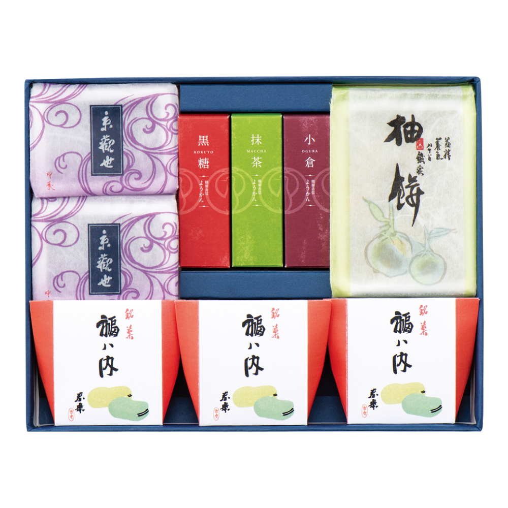 京観世個包装×2、柚餅個包装、福ハ内個包装×3、鶴屋吉信ようかん(小倉・抹茶・黒糖) お届け時期:11月1日から