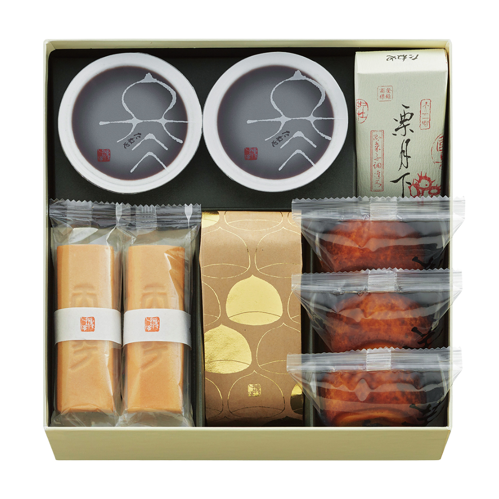 ふくみ天平×4、栗の子2個入、福寿芋×3、栗月下、本生羊羹 冬味×2 お届け時期:12月26日まで(承り期間:12月19日まで)