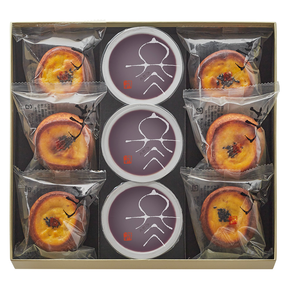 北海道産小豆の風味をいかした「本生羊羹 冬味」と、さつまいもを使った「福寿芋」を詰め合わせに。