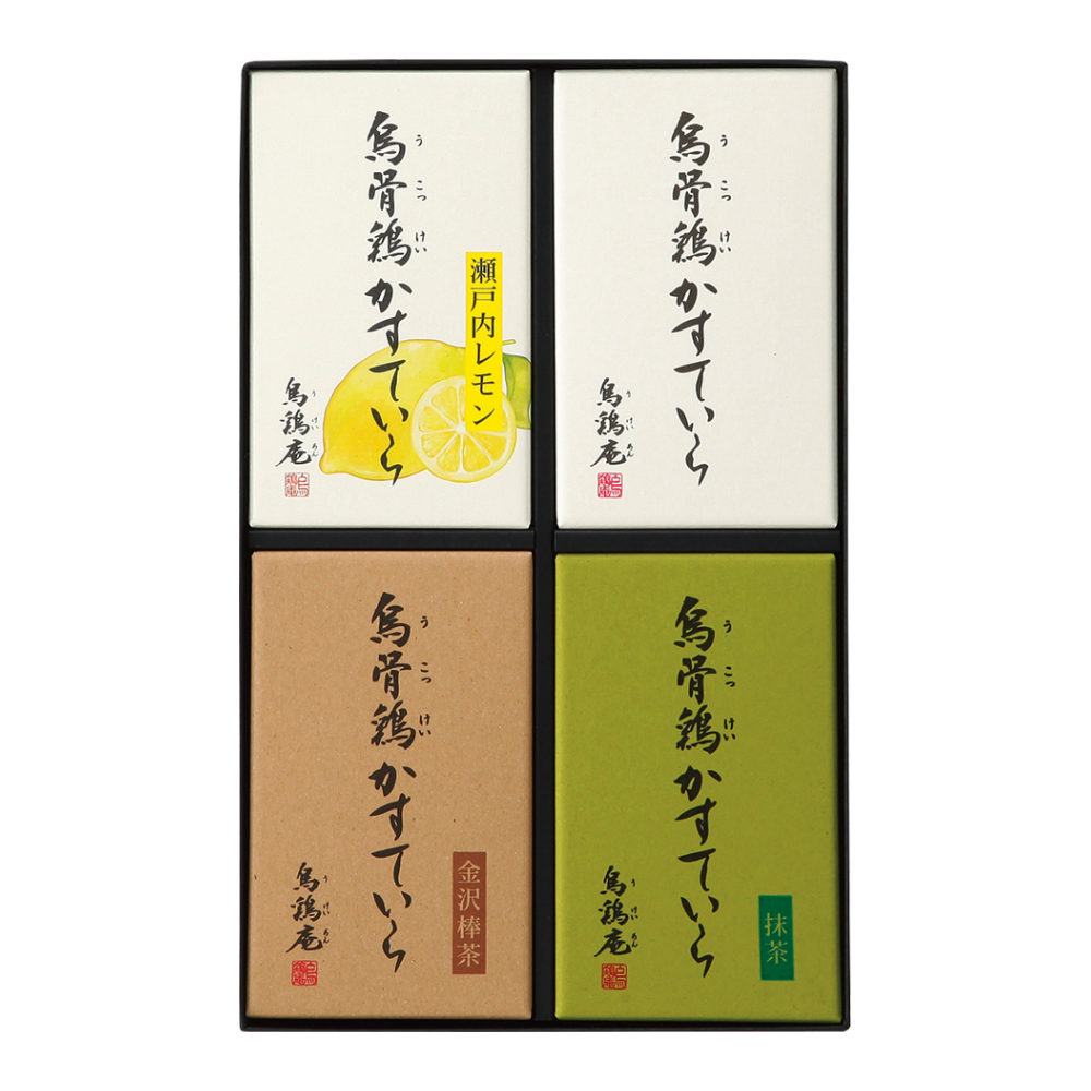 烏骨鶏かすていら1.5号(プレーン・抹茶・金沢棒茶・瀬戸内レモン)