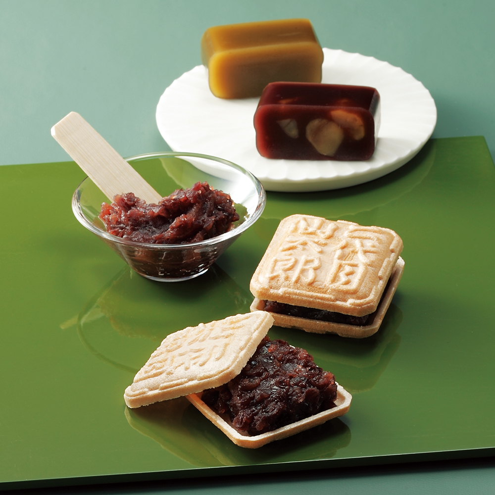 ご自身で餡を詰めていただく「お好きにご存じ最中」や、本煉羊羹などの詰め合わせ。