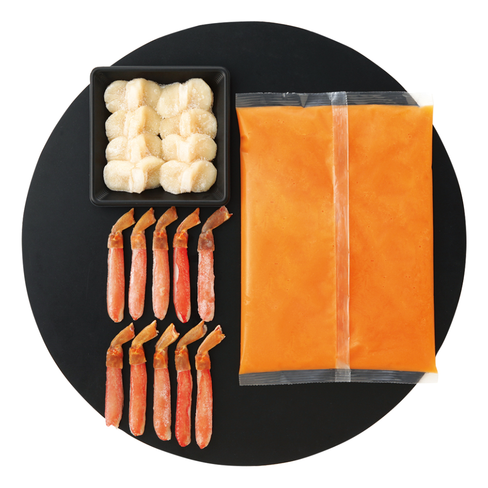 うにだしスープ800g、ずわいがにポーション150g、帆立スライス150g