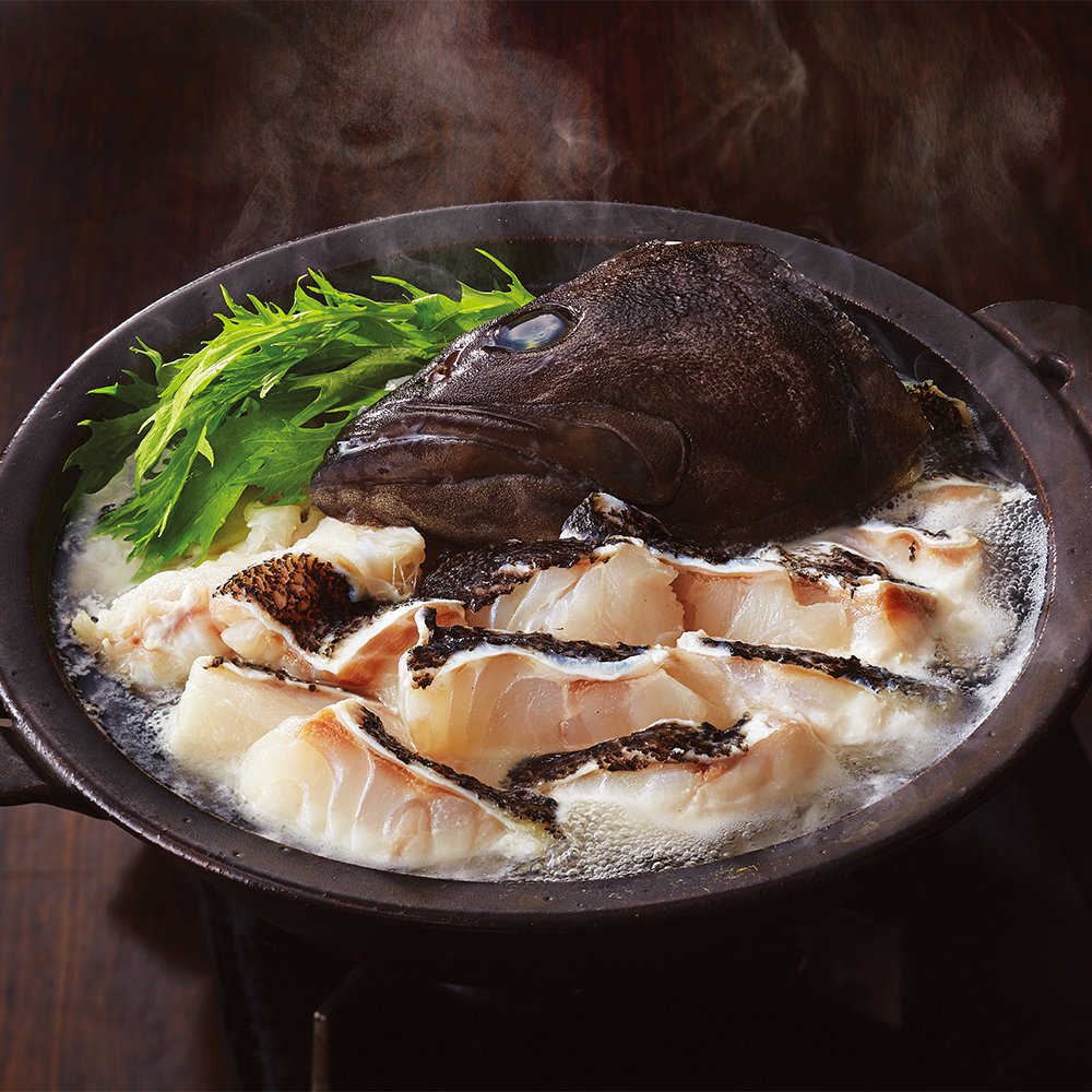 愛媛県の愛南町で重宝されてきた高級魚。皮や身から出る脂と白身の淡白な味が調和するクエを鍋に。