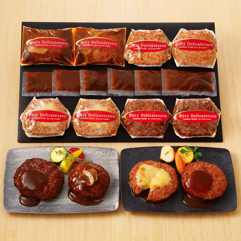和牛ハンバーグ・チーズハンバーグ・プレーンハンバーグ各110g×2(ソース付)、煮込みハンバーグ125g×2