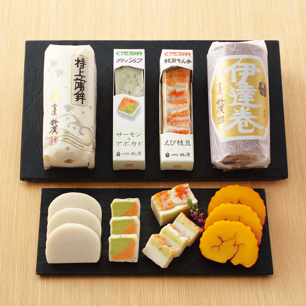 特上蒲鉾(白)260g、伊達巻ハーフ280g、海山のおーどぶる(えび枝豆、サーモン&アボカド) ※迎春用としてお正月に召しあがる場合は12月23日から29日までのお届けをご指定ください。