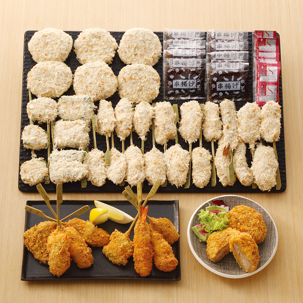 関西で愛されるヒレとんかつに、串重人気の串揚げを詰め合わせた、食べ比べも楽しいセットです。
