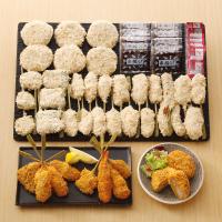 ヒレとんかつ6枚、海老・鶏ねぎ・豚ロースチーズ・ほたて・鶏チーズ・アスパラミルフィーユ・ししとう・甘鯛各3本、とんかつソース・串カツソース付