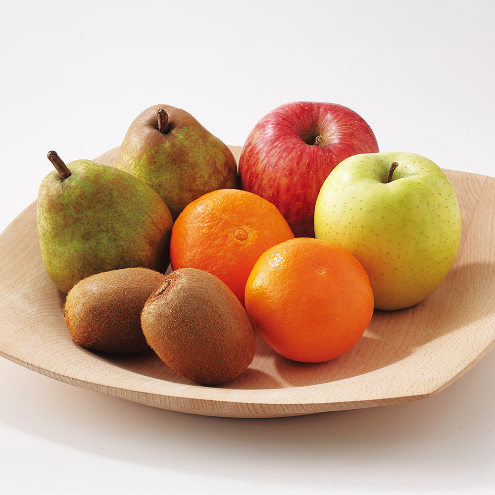 サンふじ・王林・紅まどんな・天草各1個、ラフランス・キウイフルーツ各2個、計2.8kg