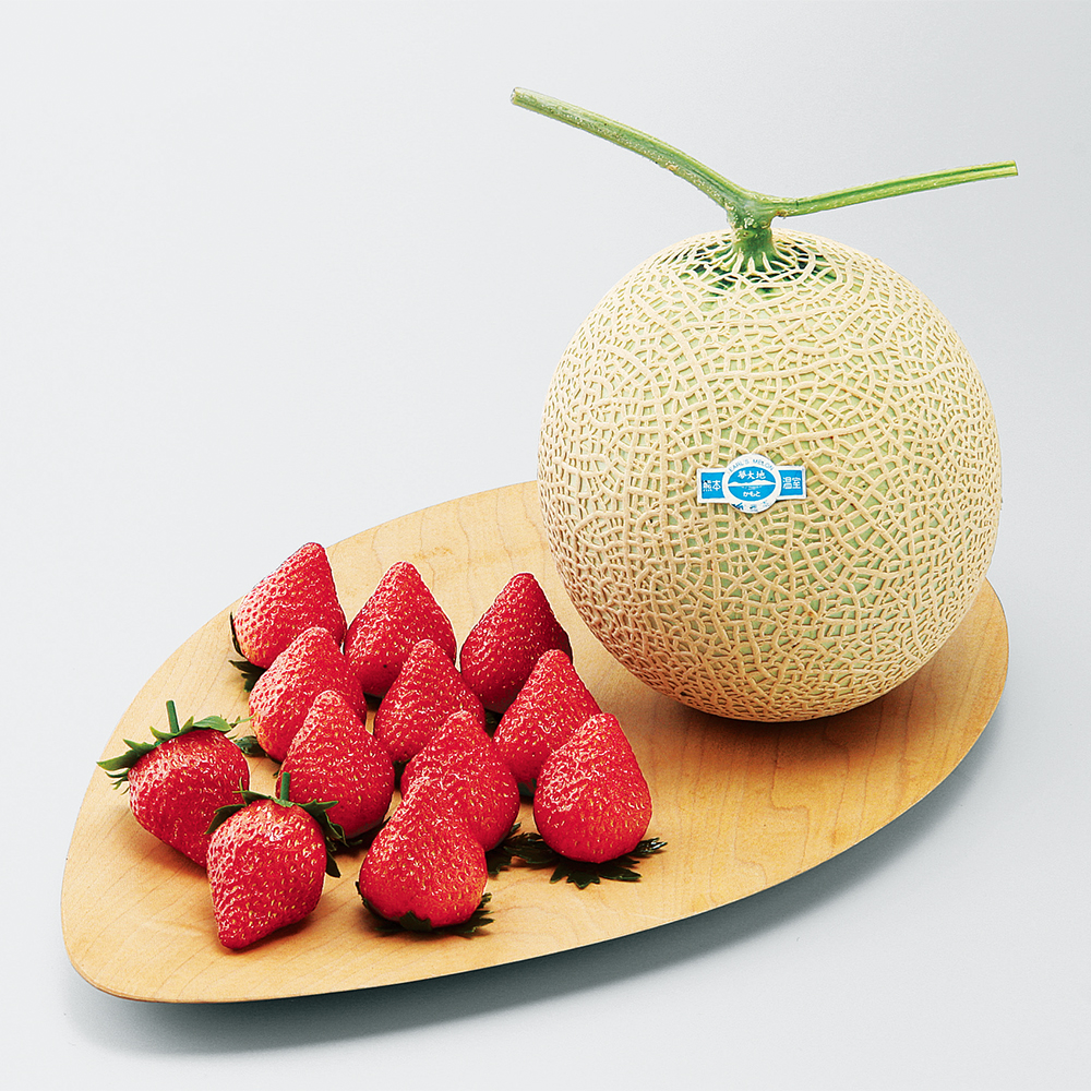 熊本県産青肉メロン1玉(1.3kg)、栃木県産とちあいか300g(12~15粒)、計1.6kg