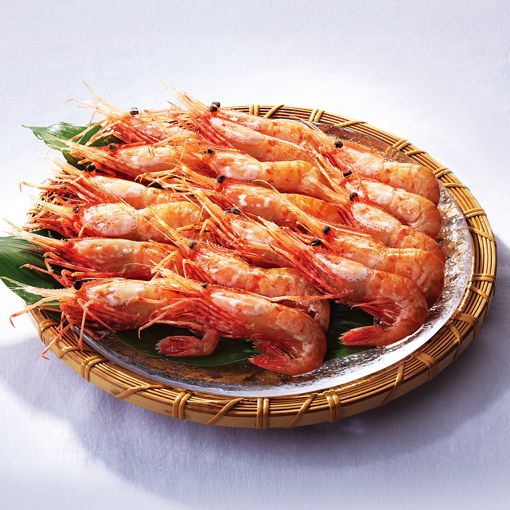 北海道噴火湾で水揚げされたぼたん海老。引き締まった身は甘く、とろけるような食感です。