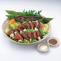 伝統的な一本釣りで獲れた、鮮度の良い脂ののった鰹を、昔ながらの製法でたたきに仕上げました。