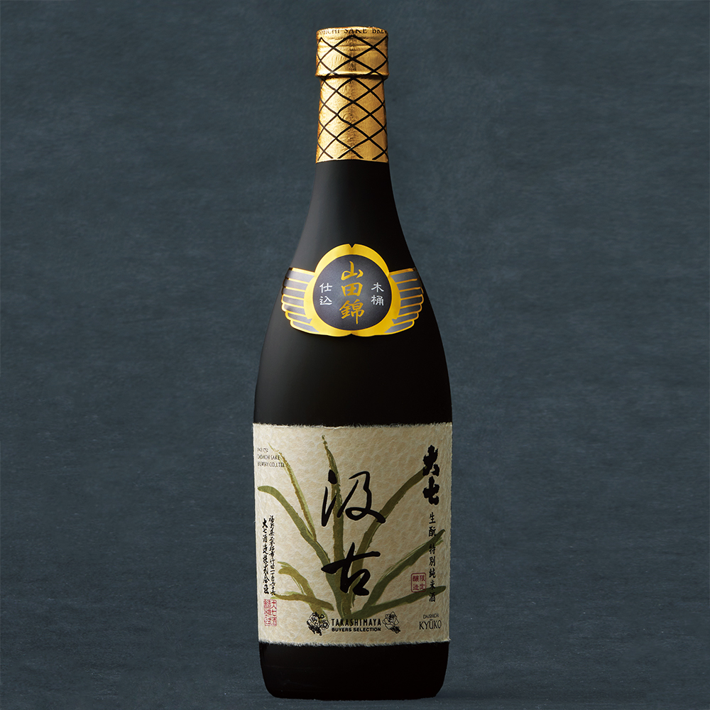大七酒造の社員が育てた福島県二本松市産の‘山田錦’を木桶で生もと造りに。15年熟成、複雑な旨み。