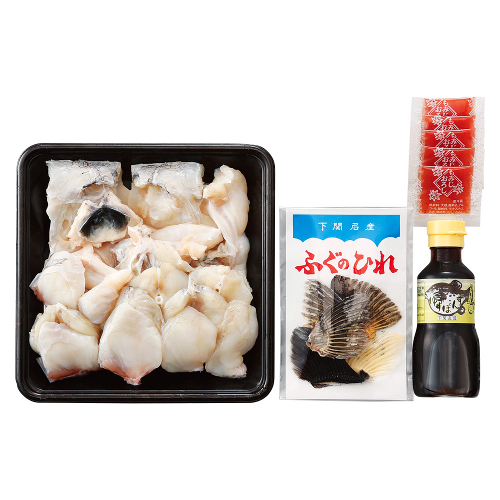 とらふぐちり450g、とらふぐひれ5枚、ポン酢150ml、もみじおろし16g ※原産地:とらふぐ(国産・養殖) ※12月28日→30日のお届け(承り期間:12月16日まで)