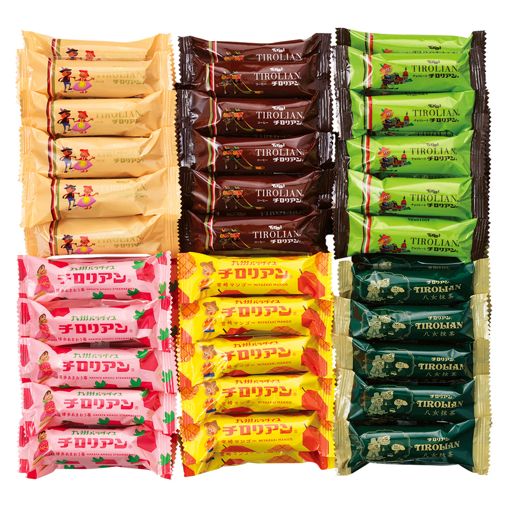 チロリアン(ショート):バニラ・コーヒー・チョコレート・博多あまおう苺・宮崎マンゴー・八女抹茶 各10本