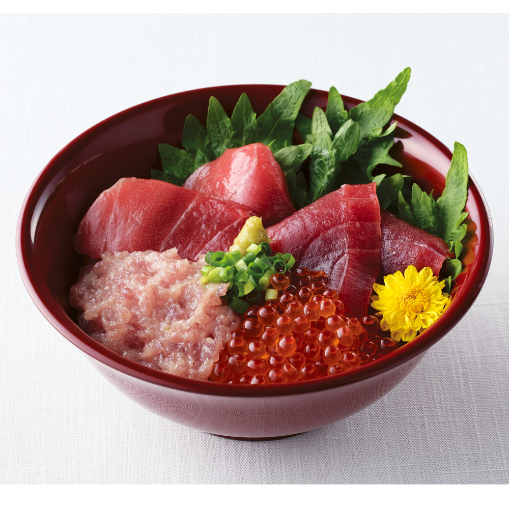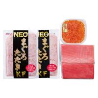 養殖本まぐろ中トロ180g・養殖本まぐろ赤身180g、まぐろたたき250g×2、いくら醤油漬け80g ※原産地:まぐろ(トルコ・マルタほか)、いくら(ロシア) ※11月20日からのお届け