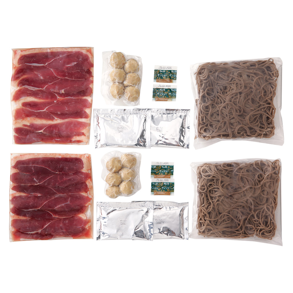 合鴨ロース130g・合鴨つくね6個・五割そば200g各2、鴨だし濃縮スープ30g・山椒0.2g各4 ※11月10日→12月24日のお届け(承り期間:12月14日まで)