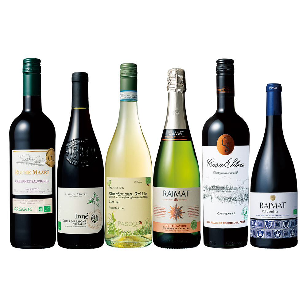 ロシュマゼ オーガニックカベルネ(赤)、コートデュローヌV(赤)、PQシャルドネ・グリッロ(白)、アニマ(赤)、カルメネール(赤)、ライマット カヴァ ブリュット(白泡) ※醸造地:仏・伊・西・チリ