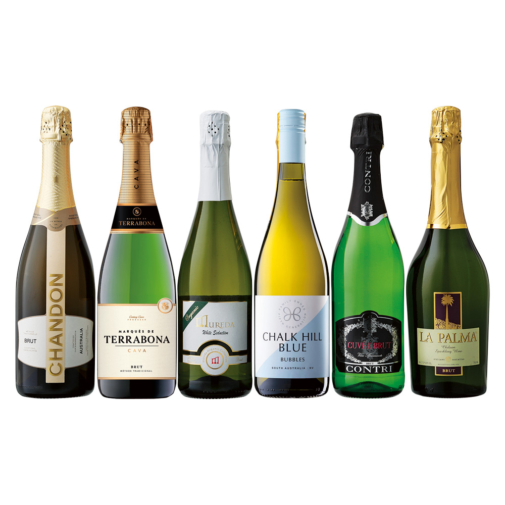 イタリア、スペイン、オーストラリア、チリより軽やかではじける泡立ちのものから、きめ細やかでややしっかりとしたタイプのものまで取り揃えたスパークリングワイン6本セットです。