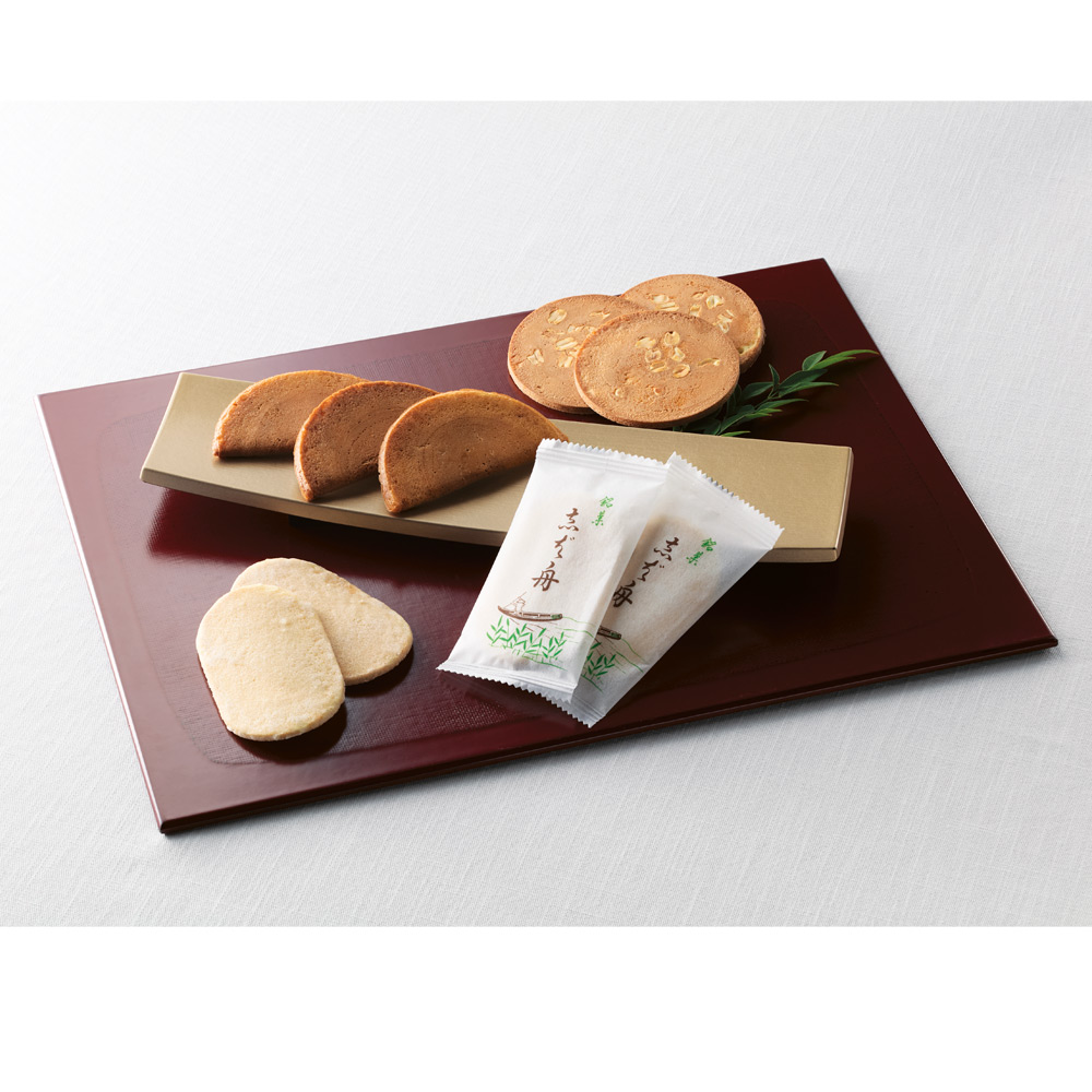 みそせんべい14枚、ピーナッツせんべい12枚、しばふね小判10枚×2