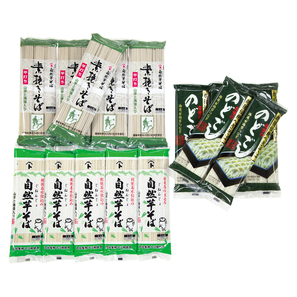 自然芋そば200g・素挽きそば270g・へぎそばのどごし210g 各5