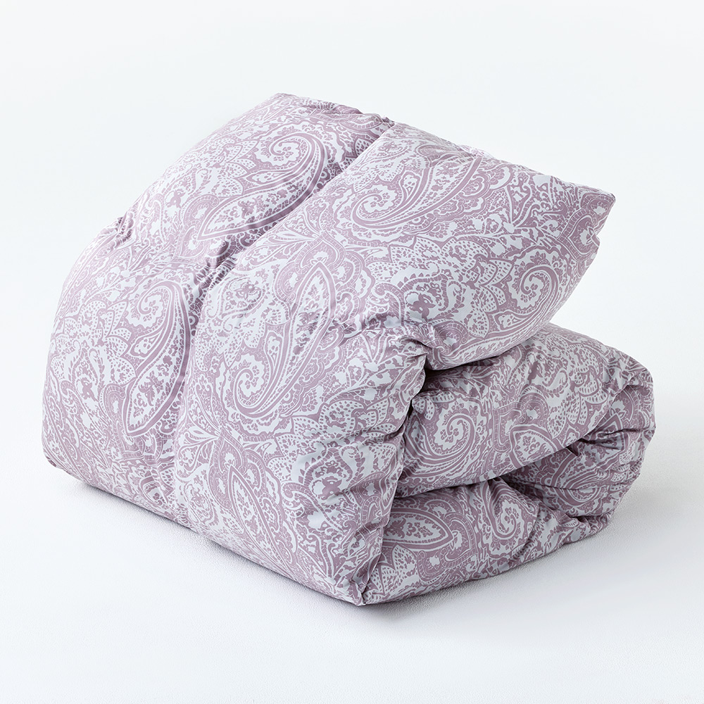 イングランド産ホワイトダックダウン90%の上質な羽毛を使用。ダウンパワー370dpでボリューム感があります。側地はサテンで仕上げました。