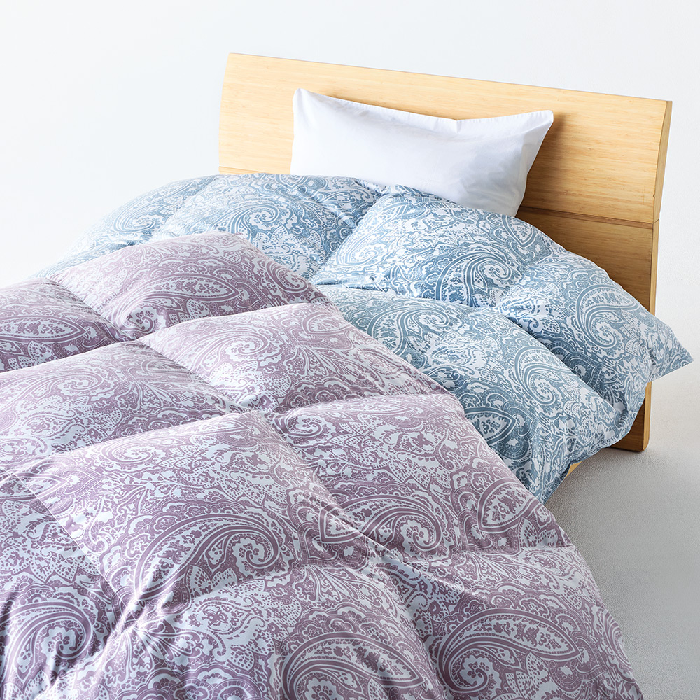 側地:綿100%、中わた:ホワイトダウン90%・フェザー10%、(中わた1.2kg入)、150×210cm ※日本製