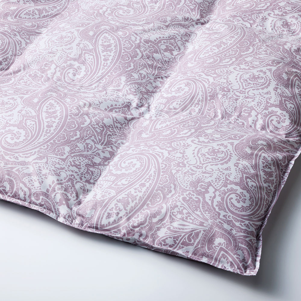イングランド産ホワイトダックダウン90%の上質な羽毛を使用。ダウンパワー370dpでボリューム感があります。側地はサテンで仕上げました。