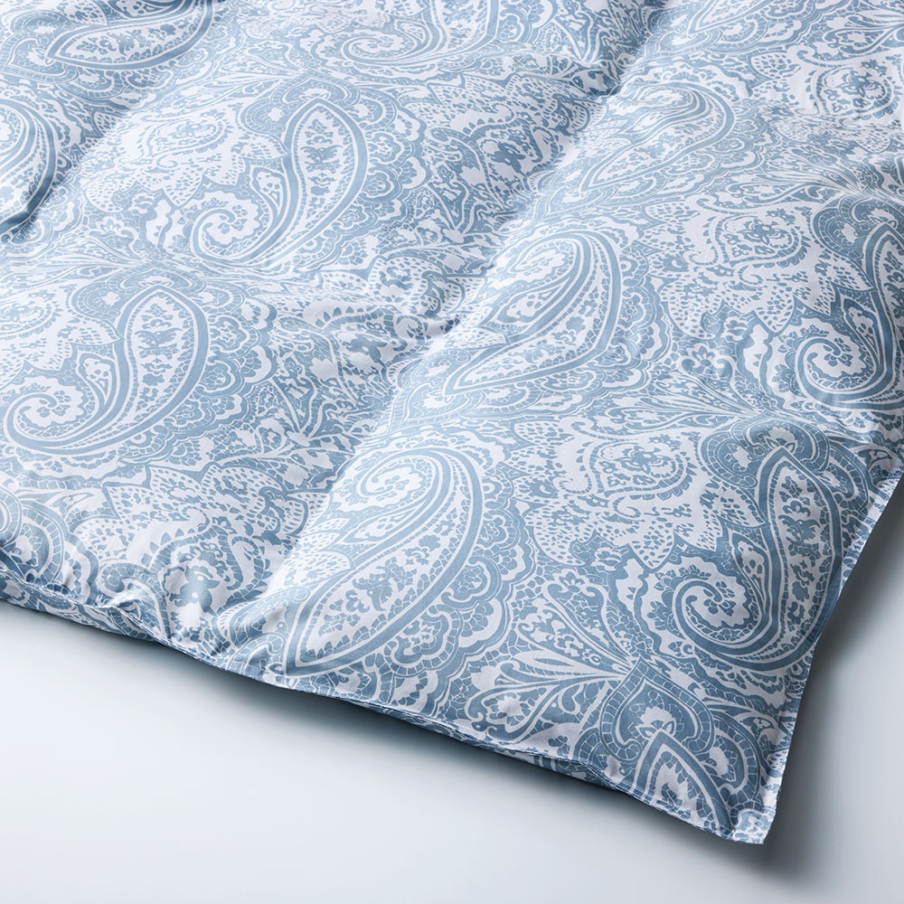 イングランド産ホワイトダックダウン90%の上質な羽毛を使用。ダウンパワー370dpでボリューム感があります。側地はサテンで仕上げました。