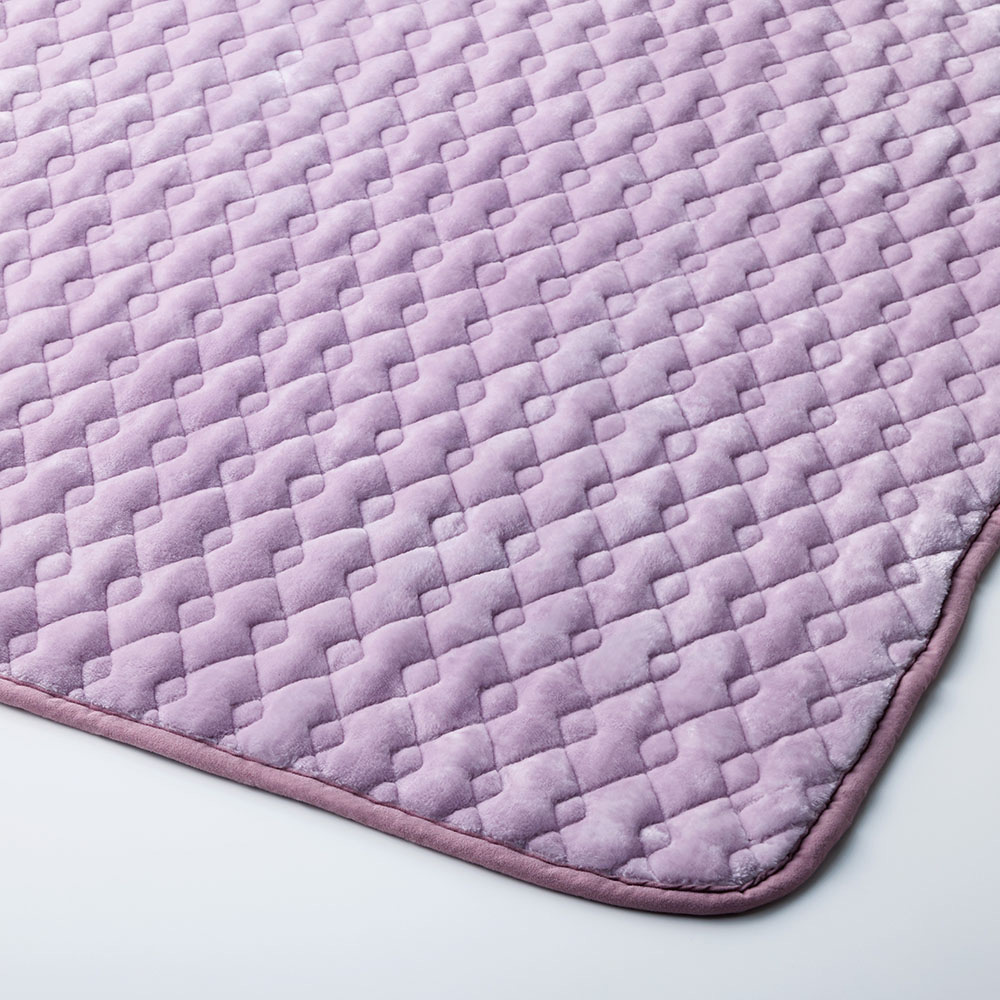毛布側生地・敷パッド表地:パイル糸(毛羽部分):アクリル85%・レーヨン15%、地糸:ポリエステル100%、敷パッド裏地:ポリエステル65%・綿35%、詰めもの:ポリエステル100% ※日本製