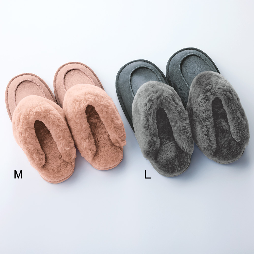 甲・甲裏・底:ポリエステル、甲ヘリ・中板:羊毛皮、底すべり止め:合成皮革、Mサイズ/約23~25cm(ローズ)・Lサイズ/約25~27cm(グレー) ※中国製〈150セット限り〉