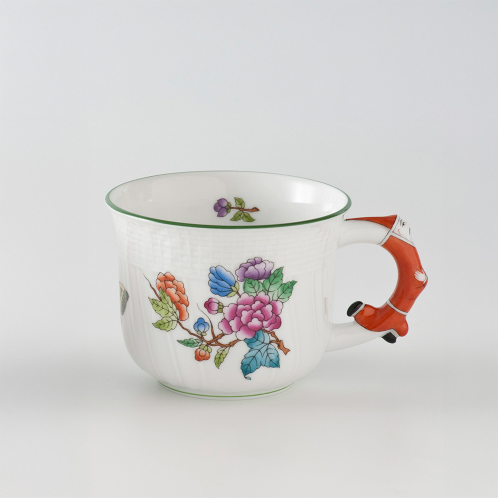 人気のヴィクトリアシリーズよりマグカップのご案内です。ヘレンドのアイコンとも言えるマンダリンがサンタの衣装を着てハンドルになっている楽しいマグカップ。口が広く安定感があるので、飲み物以外にもスープやヨーグルトなどスプーンで掬いやすい形になっています。
