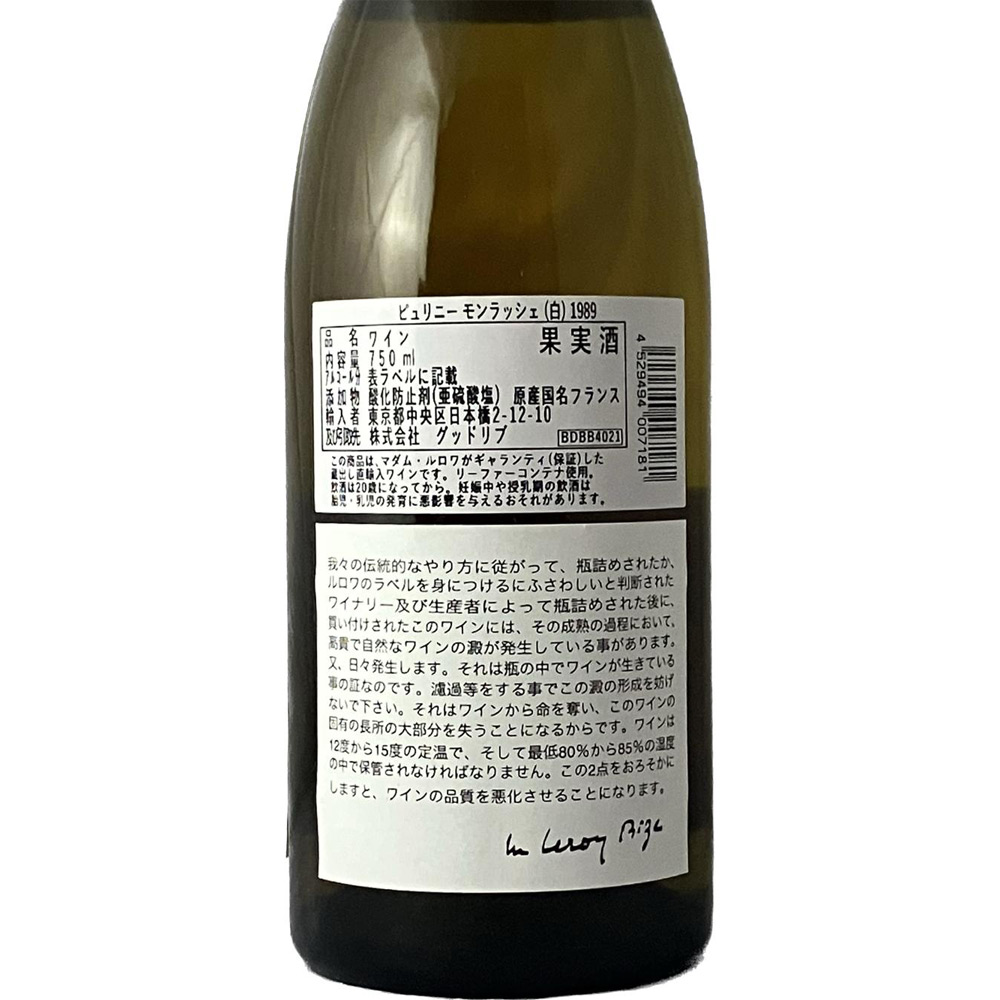 1989 ピュリニー モンラッシェ (白) 750ml × 1本