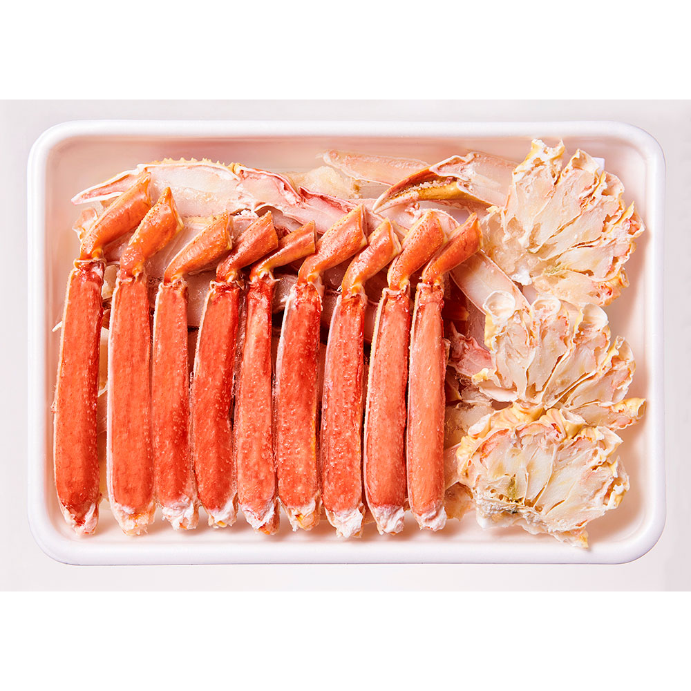 - 大型ボイルタラバガニ半むき身(棒肉・南蛮・爪肉・肩肉)1kg、大型ボイルズワイガニ半むき身(棒肉、爪肉、肩肉)1kg 計2kg