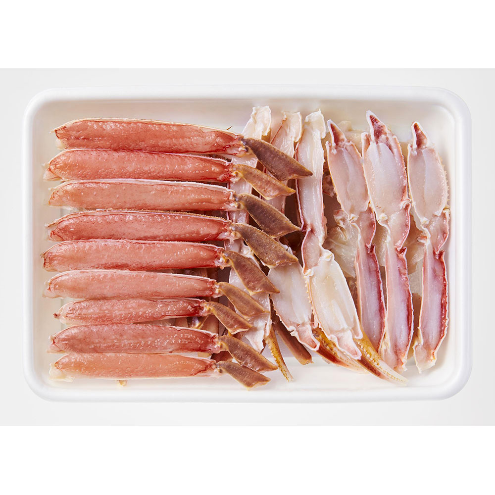 - 生ズワイガニ半剥き身(棒肉・爪肉・爪下肉・肩肉)×1kg、生ボタン海老×6尾