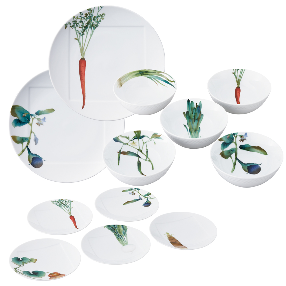 モダンに京野菜をあしらったノリタケ人気のシリーズ京香旬彩。電子レンジ・食洗機対応は、魅力の一つです。