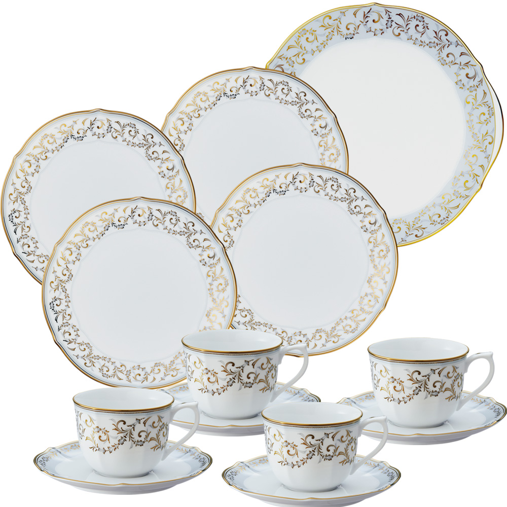 <セット内容>28cmパーティープレート×1、21.5cmプレート×4、カップ&ソーサー×4 計9点