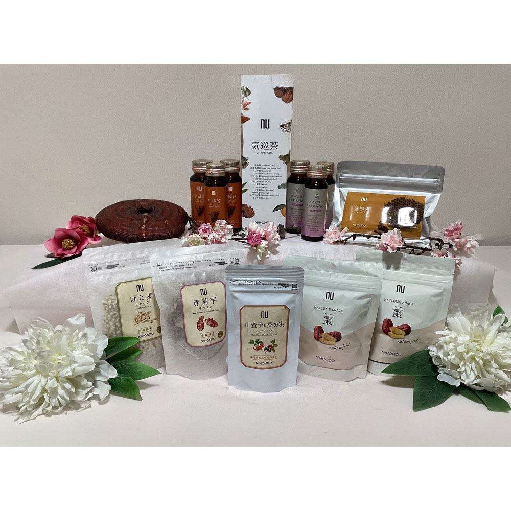 13種類の東洋素材と茶葉をブレンドしたこだわりの「気巡茶」と、水抽出したプロポリスに田七人参、冬虫夏草などをバランスよく配合した「喜蜂寿」、古くから健康維持に重宝されてきた貴重な牛樟芝を配合した「牛彰芝エナジードリンク」と、コラーゲンや和漢素材でキレイと元気をWサポートする「ラディアンス<ビューティー>」、素材そのままをスナック感覚でそのまま食べられる「赤菊芋チップス」「はと麦スナック」「山査子&桑の実スティック」「なつめスナック」がセットになったお得な福袋です。日々の食事のサポートにご利用ください。