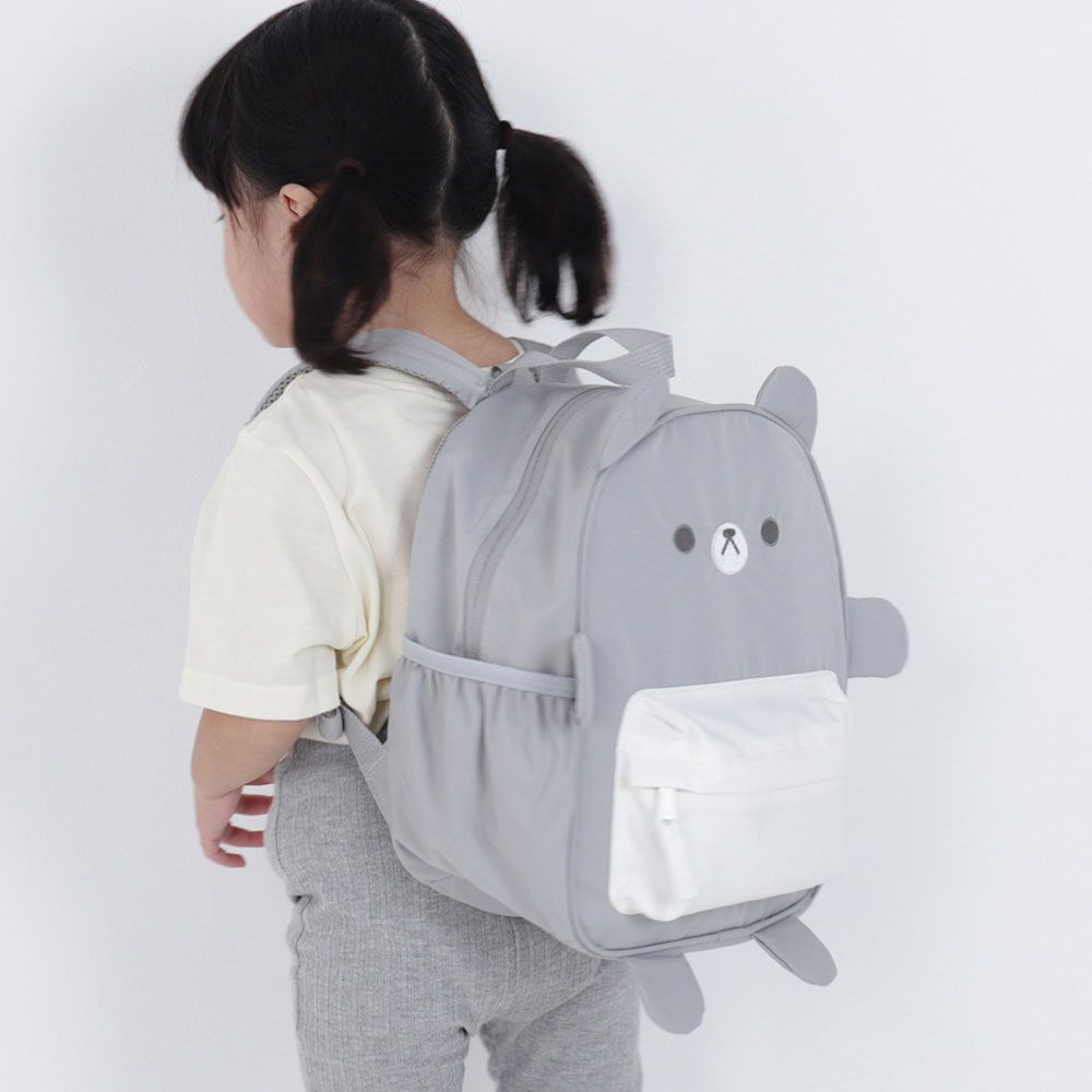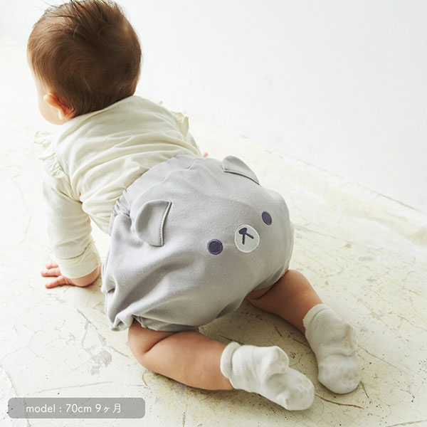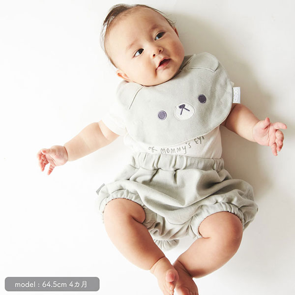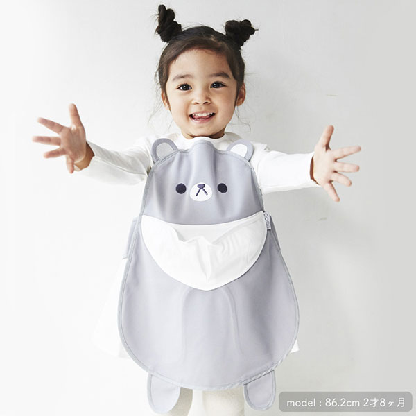<セット内容>グレーくまエプロン×1、くまブルマ×1、くまビブブルマ×1、くま3WAYベビーリュック×1、くまたれつきベビーハット×1 計5点