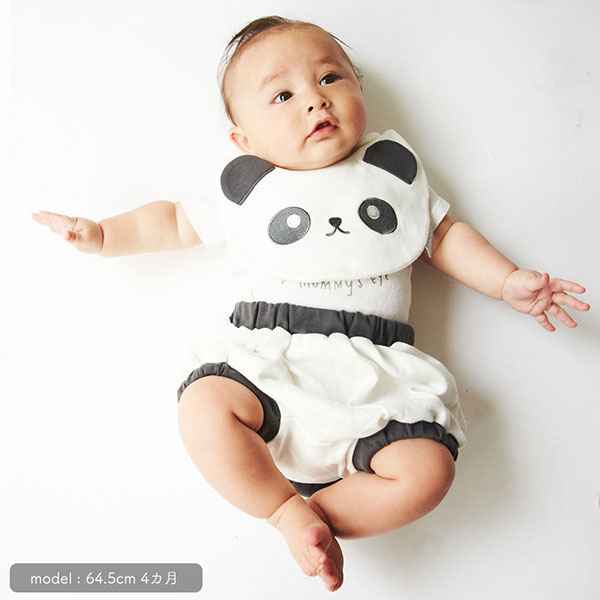 <セット内容>パンダお食事エプロン×1、パンダブルマ×1、パンダビブブルマ×1、ふわふわショートサロパンダ×1、パンダベビーハット×1 計5点