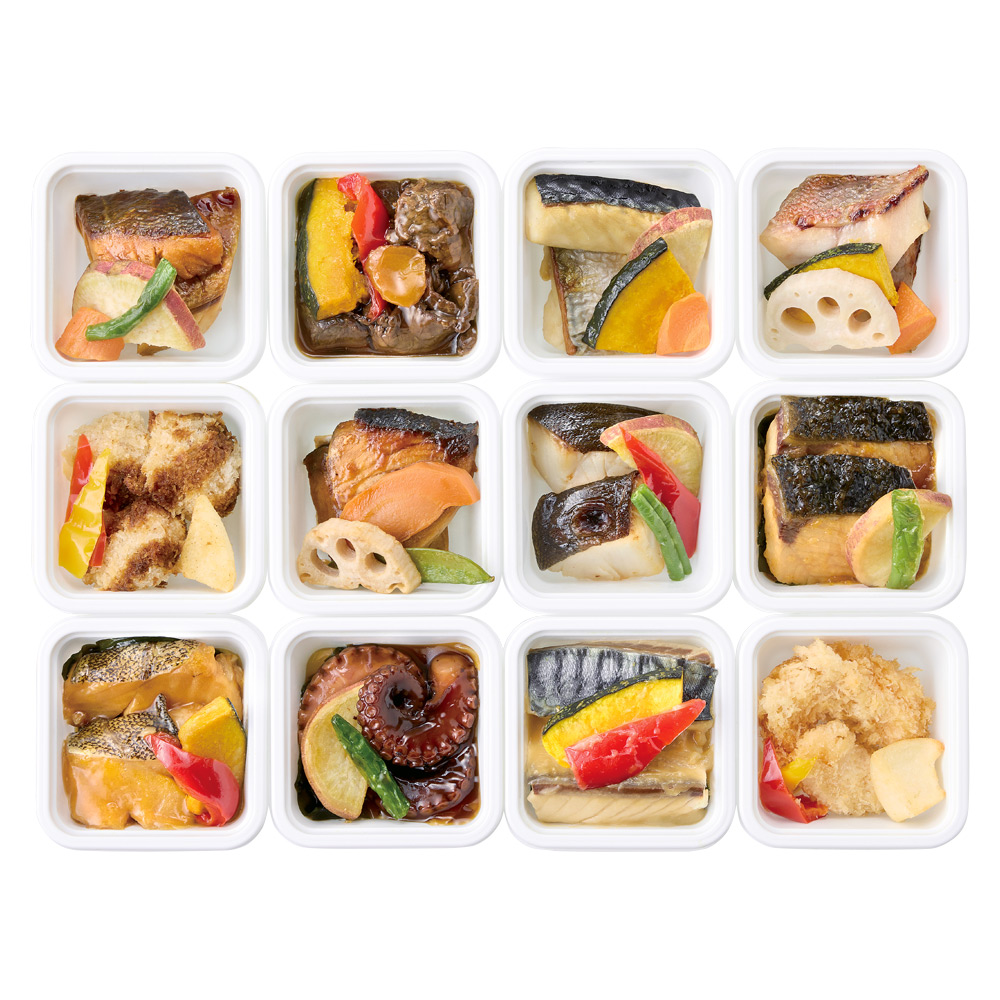 ぶりみぞれ煮・めぬけ西京焼・銀だら西京焼・銀ひらす照焼・えびフライ・たこ柔らか煮・くじら生姜煮・たら含め煮・ほたてフライ・ぶり照焼・灰干し焼さば・さば味噌煮