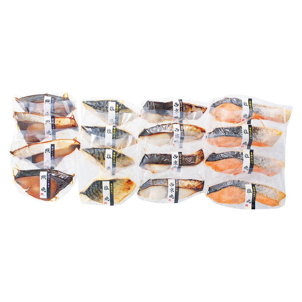 鮭塩焼・鯖塩焼・さわら西京焼・ぶり照焼 各4 ※12月28日までのお届け