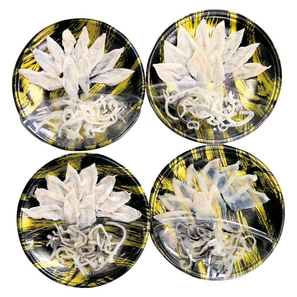 とらふぐ(刺身15g・皮刺身10g)25g・ポン酢もみじおろし15g 各4