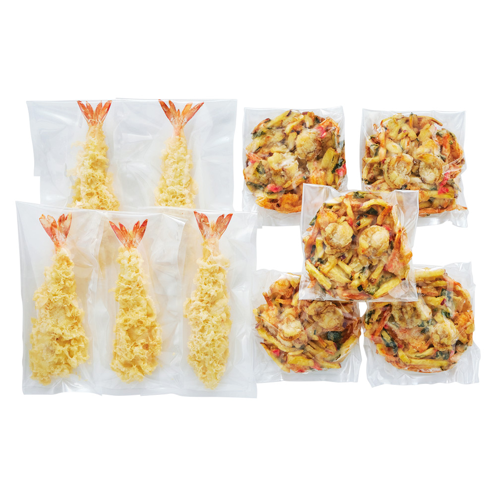 えび天ぷら5尾、海鮮かき揚5個(油調済み)