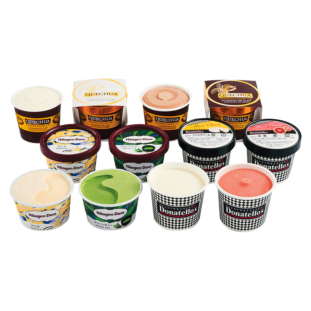ハーゲンダッツバニラ・グリーンティー各110ml×2、ドナテロウズレアチーズ・ブラッドオレンジ各100ml×2、ケチュア ホワイト・ビター各120ml×2 ※12月26迄のお届け(承り:12月15日迄)