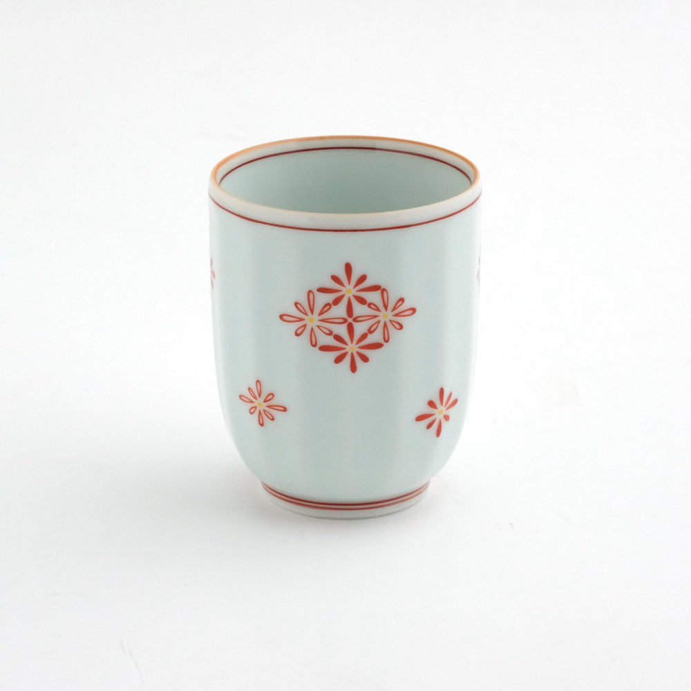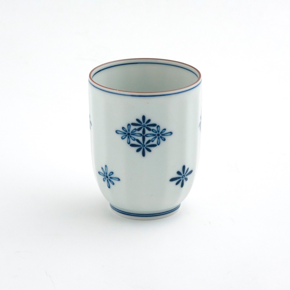 美濃焼の白地に、シンプルに菊の花をあしらった夫婦揃。菊を浸した水を飲むと長生きできるという中国の故事から、長寿の象徴とも言われます。なめらかな面取りも、無駄のない凛とした空気を醸し出します。