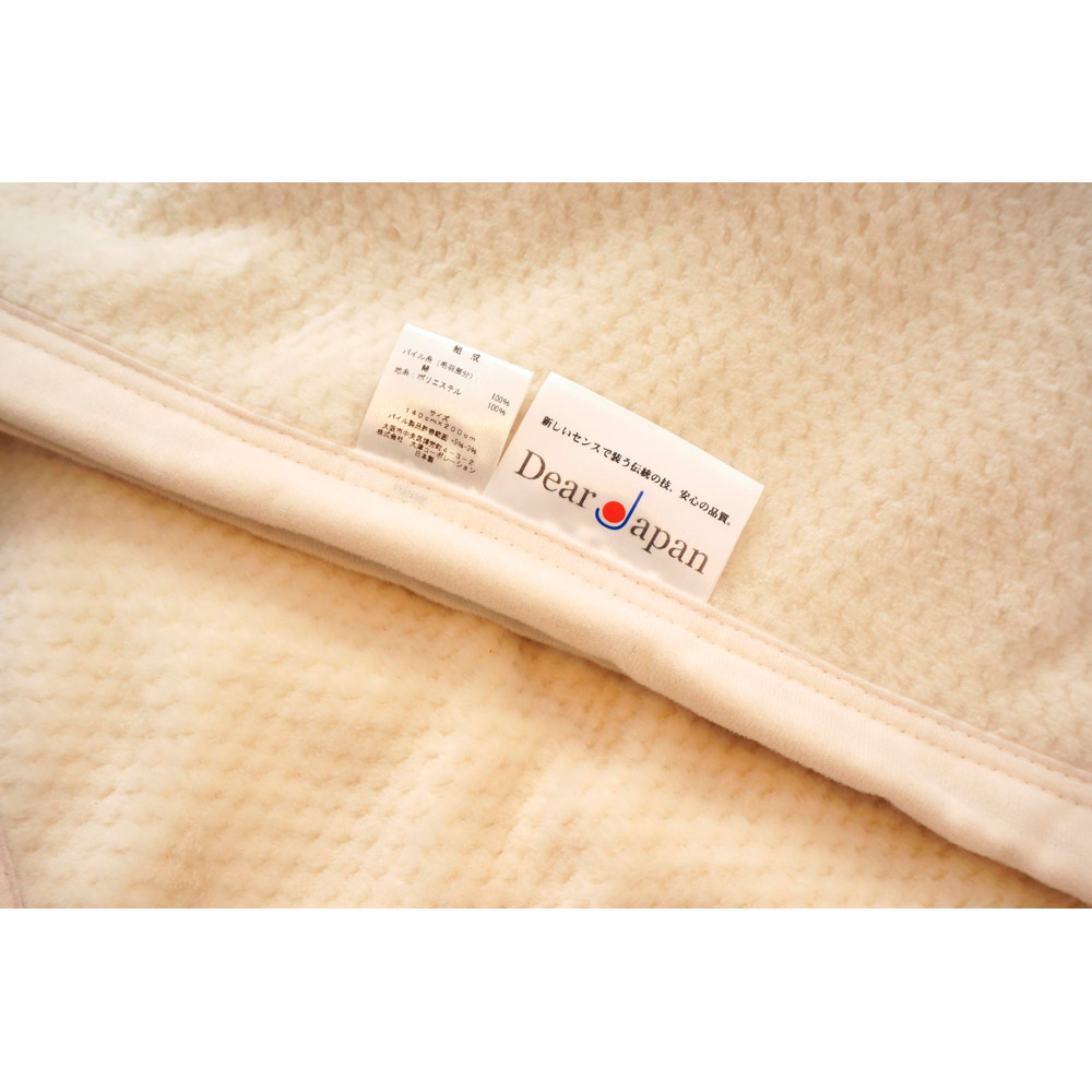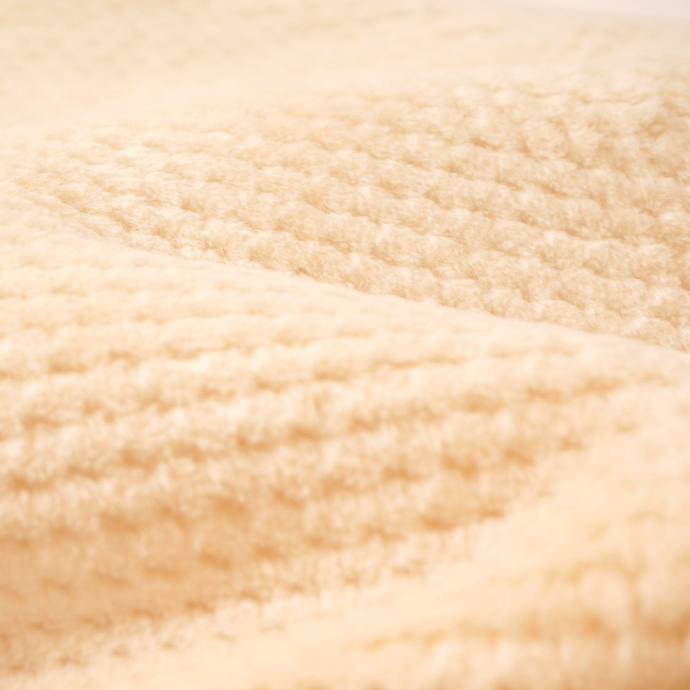 毛羽を綿素材で仕上げました。マイヤー織の毛布で針抜きという仕様により表面にぽこぽことした凹凸感がうまれ、からだにやさしくフィットします。