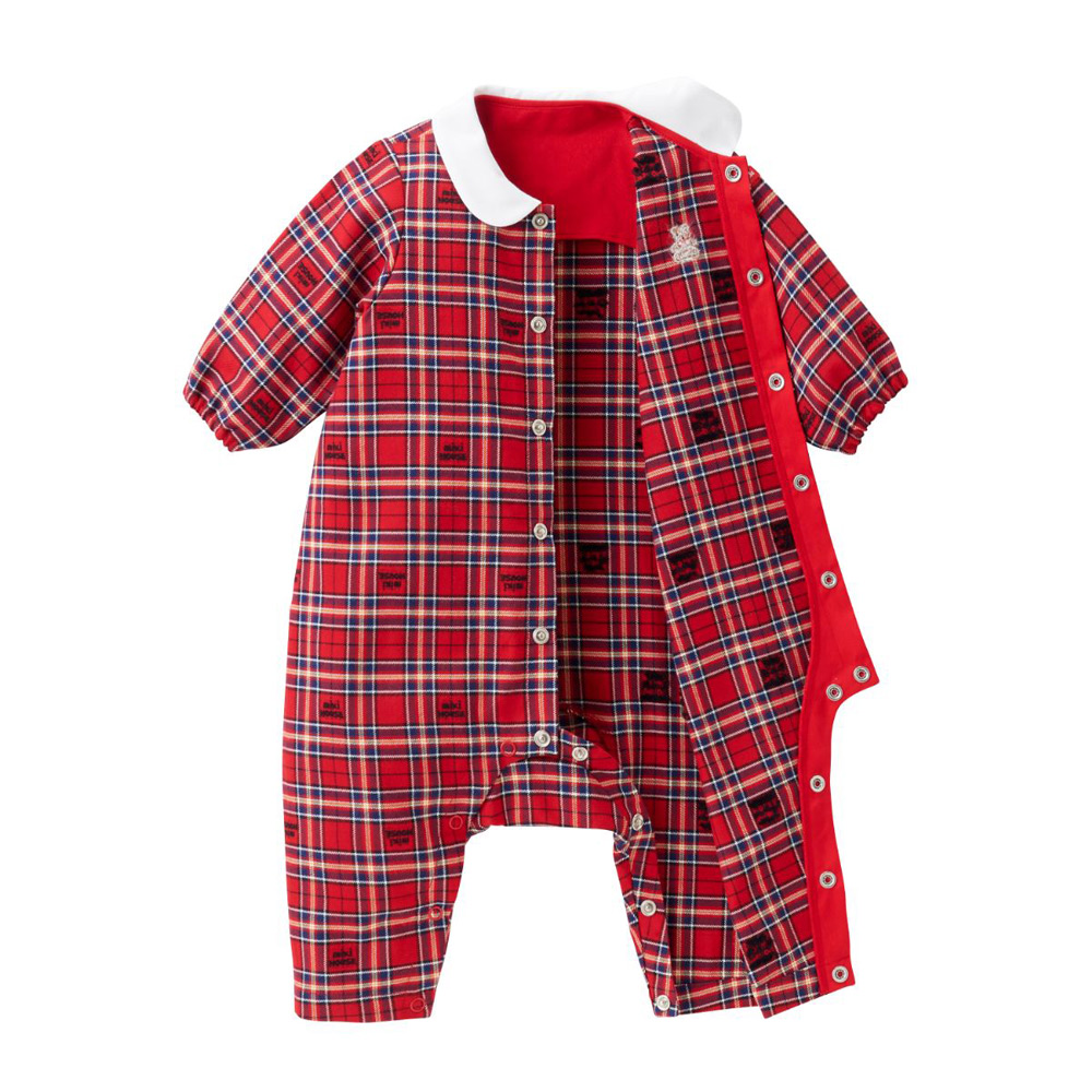 上品さとかわいさを兼ね備えたミキハウスチェックシリーズのカバーオールです。