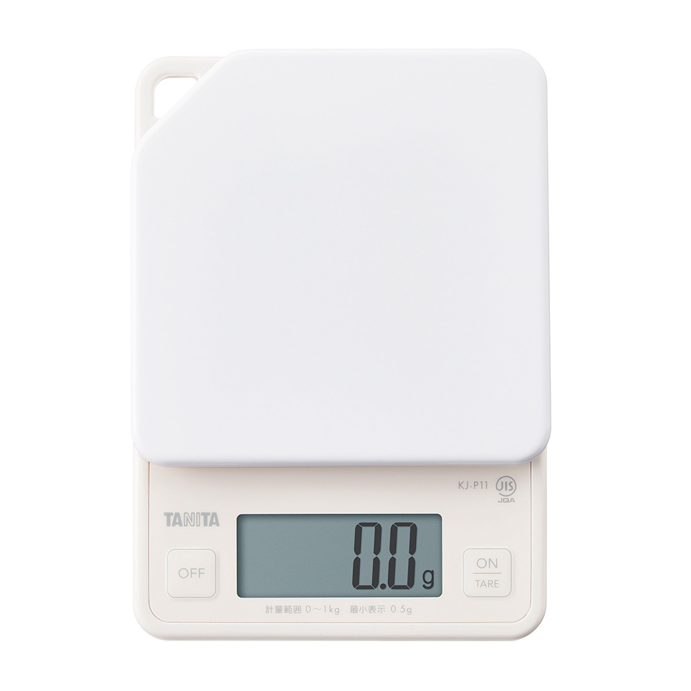 電源ボタンを押してから0g(ゼロ)が表示されるまでの待ち時間が短く、すみやかに計量を開始できます。重さが表示されるまでの反応がはやく、画面表示もスムーズに変化するので、小麦粉や牛乳などを少しずつ足す際にも材料の入れすぎを防げます。最大計量1kg、最小表示0.5g。
