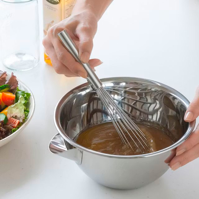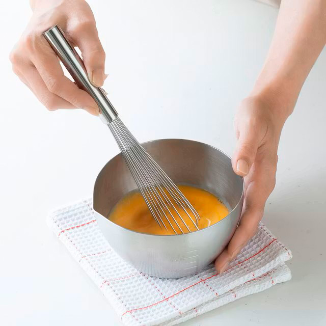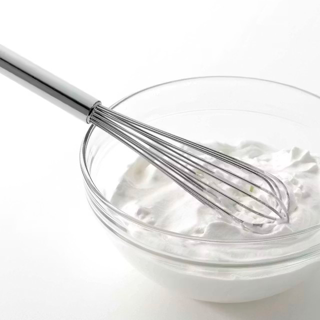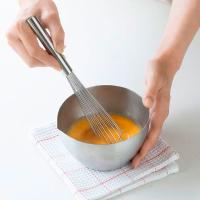 生クリームの泡立てやメレンゲ作りに便利なスリム泡立て。スリムタイプだから飛び散りが少なく、小さなボウルでもかき混ぜやすいです。また1本1本の線材が太く、力も入れやすいのでキメ細かな泡が作りやすく、丈夫で変形もしにくいです。スリムタイプなので、引き出しにもしまえて、収納性もいいです。