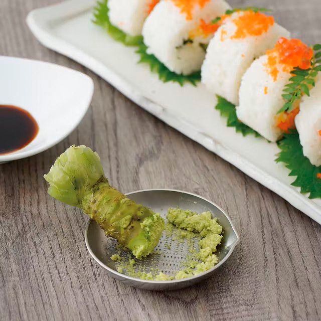 クルクルと円を描きながらおろせる刃の向きになっています。目立ての外側におろした薬味が溜まるので、箸でクルッと掻き出しやすいです。片側に注ぎ口がついており、おろした薬味に調味料を混ぜ合わせてかけることができます。薬味を余すことなく使えます。片手に収まるサイズ幅8cmで、卓上でも場所を取りません。おろしたてのわさびや生姜などの薬味を風味豊かに味わえます。